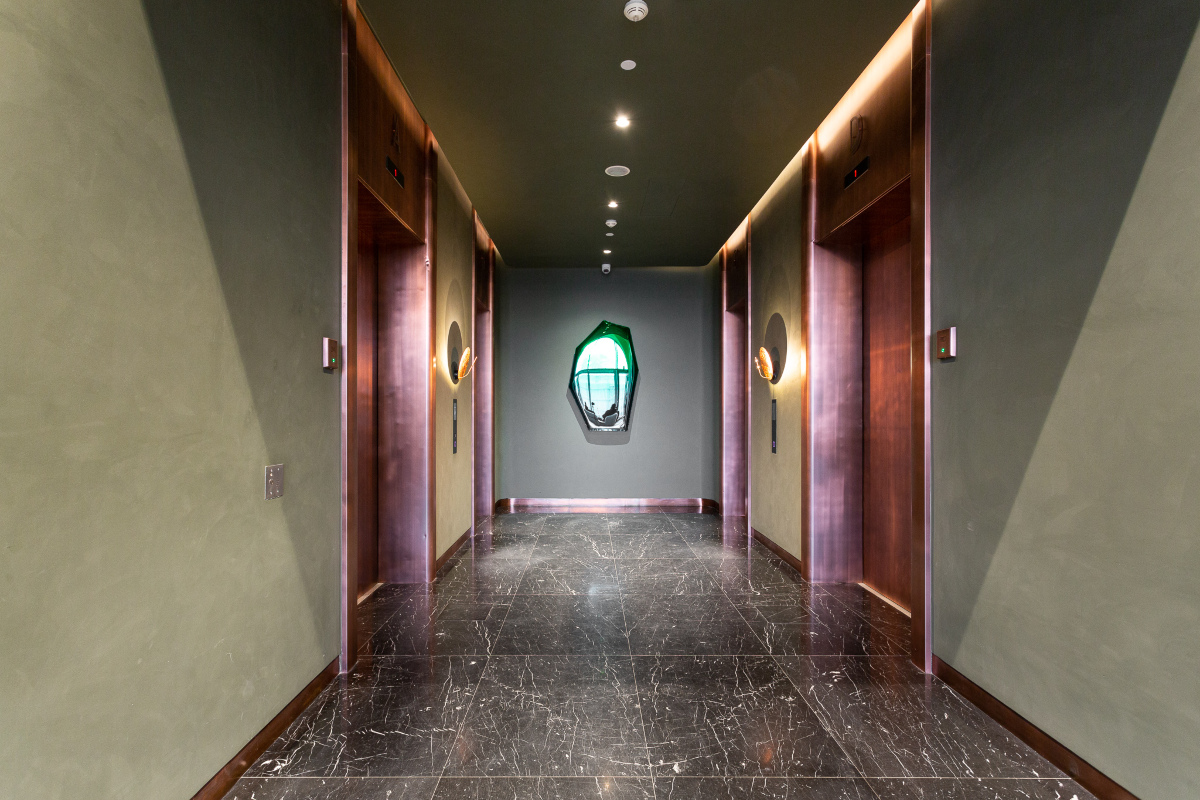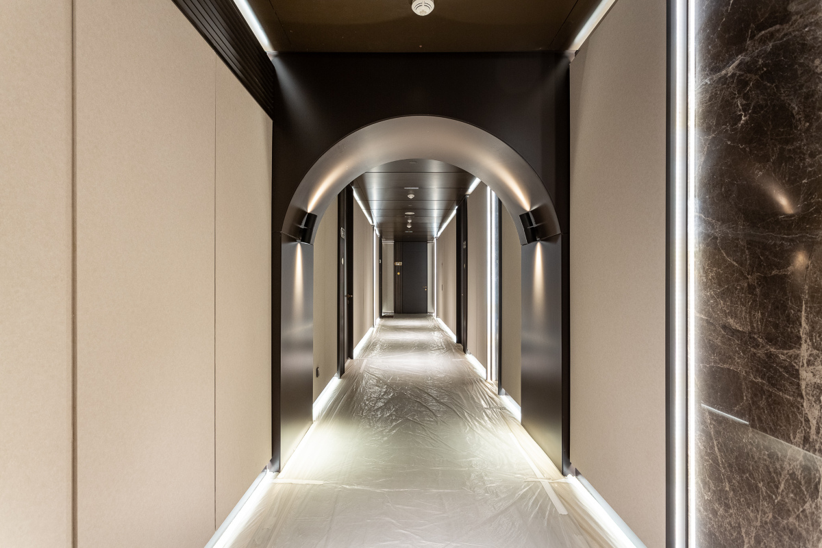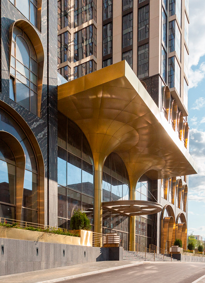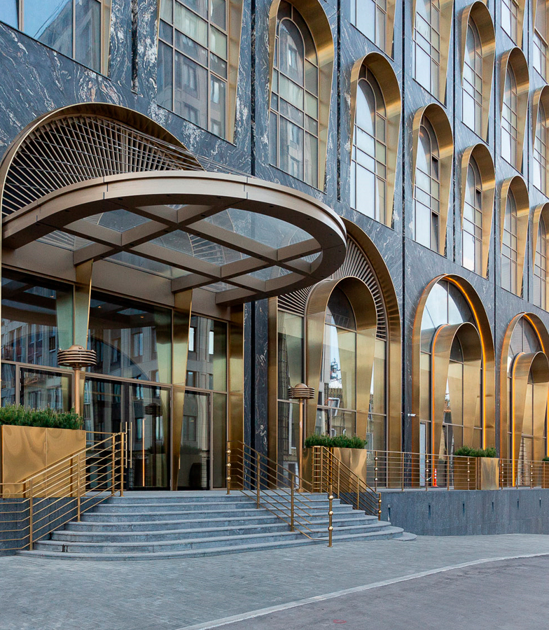 Стиль и комфорт ощущается с порога дома: в представительских лобби организованы удобные зоны ожидания, за стойкой ресепшн дежурит круглосуточный консьерж. Всего пара минут от двери апартаментов — и вы ужинаете в ресторане, обсуждаете деловые вопросы в бизнес-лаунже, заряжаетесь энергией в фитнес-зале или расслабляетесь в SPA. Подземный паркинг включает 246 машиномест и комнату для водителей.