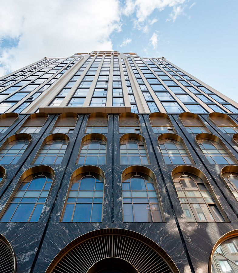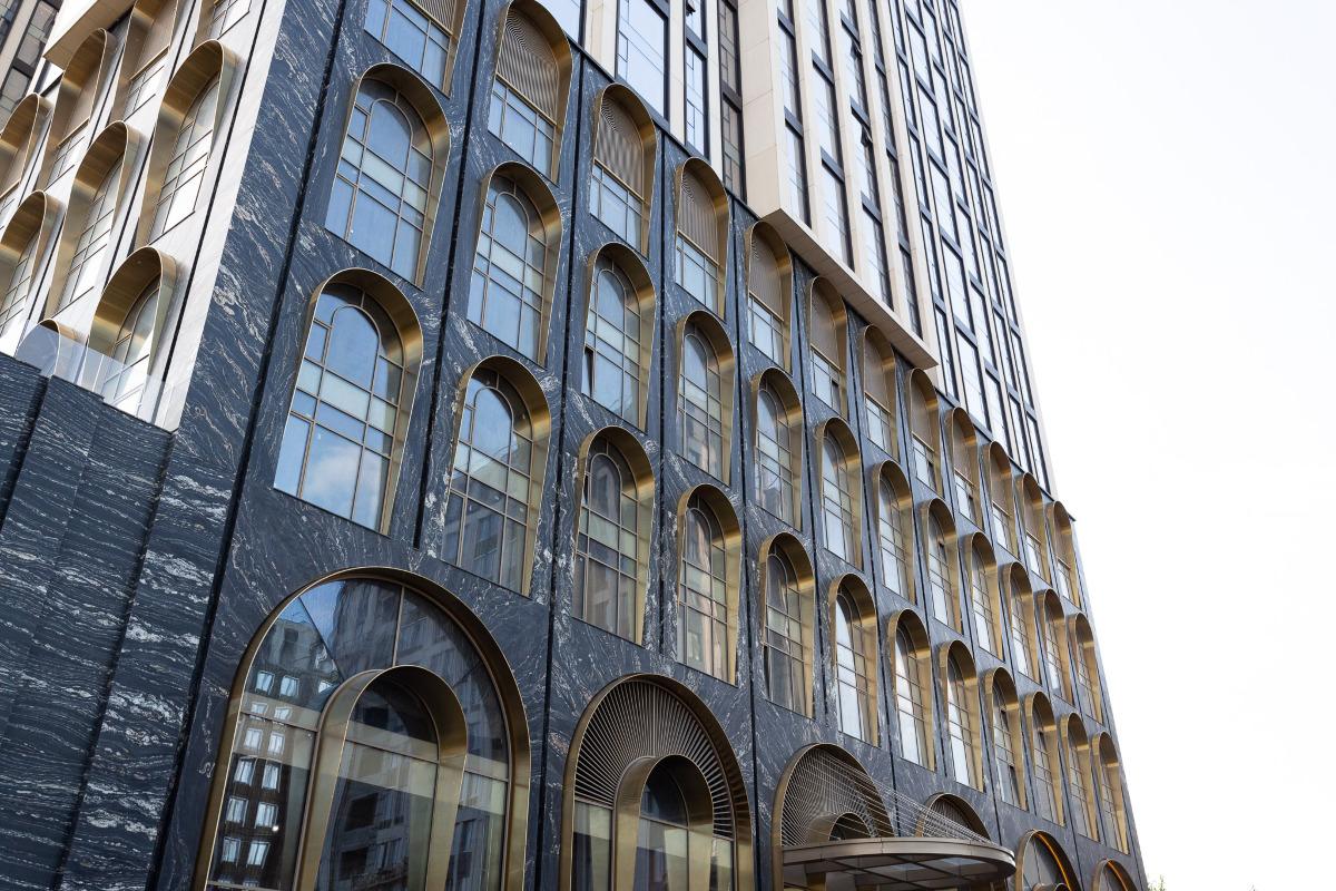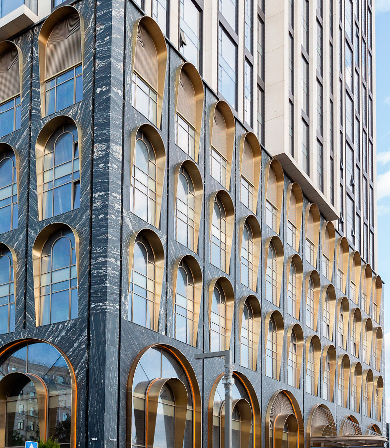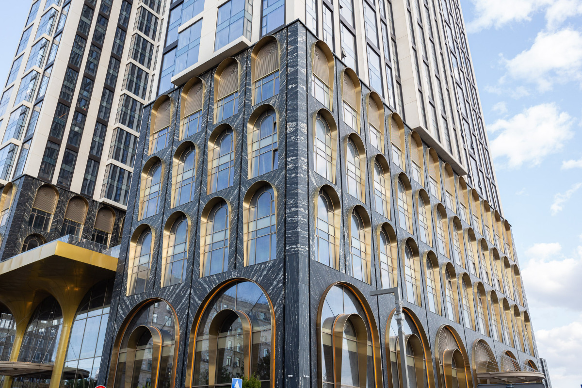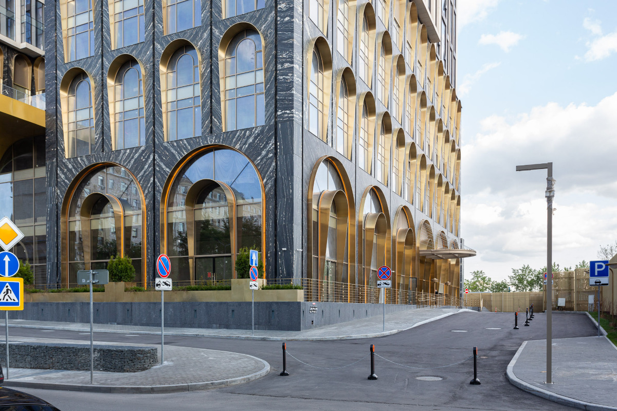 ЖК Поклонная, 9 — комплекс апартаментов премиум-класса с отделкой в районе Кутузовского проспекта. Монументальная 32-этажная высотка в стиле неоклассицизма с элементами ар-деко облицована натуральным камнем песочного и графитового оттенков. Первые 4 этажа фасад украшают арочные окна, все апартаменты выше — с панорамным остеклением. В комплексе расположен пятизвездочный отель с ультранасыщенной инфраструктурой — первоклассный сервис, не покидая пределы дома.